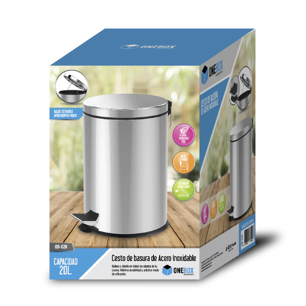 CESTO DE BASURA ONEBOX OB-C20 DE ACERO INOXIDABLE CON 20 LTS