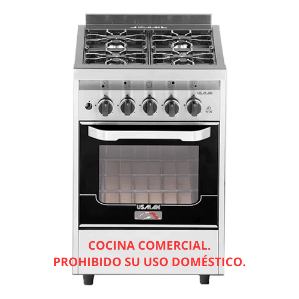 COCINA USMAN COMPACT INDUSTRIAL PLATEADA DE 4 HORNALLAS.