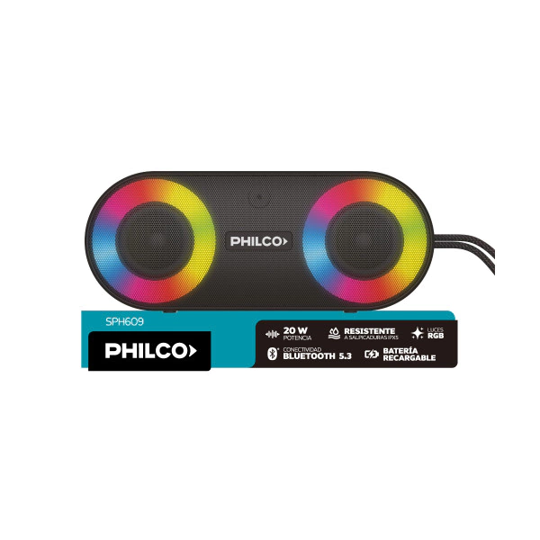 PARLANTE PHILCO SPH609 PORTATIL DE 20W LUCES RGB