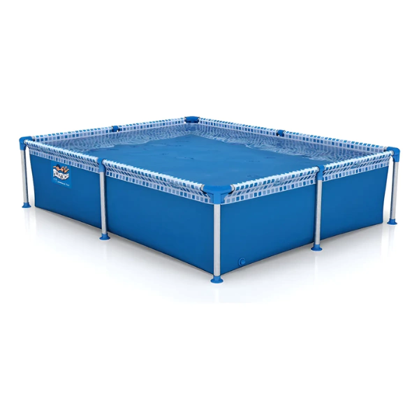 Pileta de lona, estructura metálica inoxidable y esquineros de PVC reforzados.